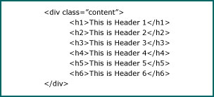 HTML heading are defined with the <h1> to <h6> tags and allows you to prioritize the topics of importance. The example below illustrates this by the text size changes, but by all means do not use headers to create bold text, instead use styles to bold the text.