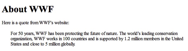 A Blockquote element is information quoted from another website, for instance here is an example: