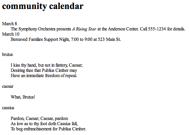 Preformatted text allows the format of the text to flow with the format you want it to go.